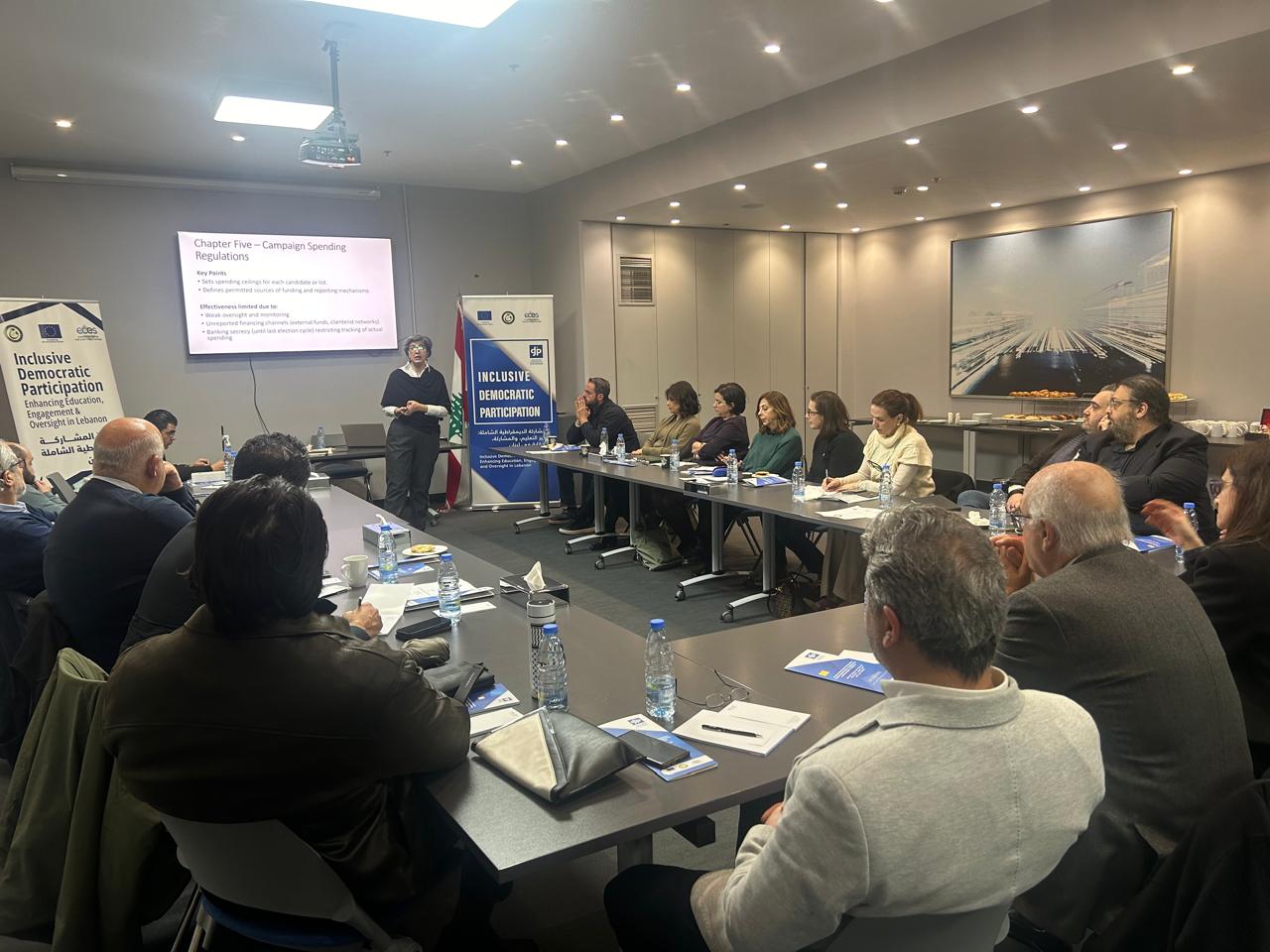 | الجلسة الحوارية الثانية حول الإعلام والإنفاق الانتخابي في لبنان (يناير 29، 2026) | | نظم المركز العربي لتطوير حكم القانون والنزاهة يوم 29 كانون الثاني 2026 الجلسة الحوارية الثانية لمناقشة الدراسة البحثية بعنوان: "الإعلام والإعلان الانتخابي وتمويل الحملات الانتخابية في لبنان" في فندق The Key – بدارو، بيروت. تأتي هذه الجلسة ضمن مشروع المشاركة الديمقراطية الشاملة الذي ينفذه المركز بالشراكة مع المركز الأوروبي لدعم الانتخابات و بدعم من الاتحاد الأوروبي