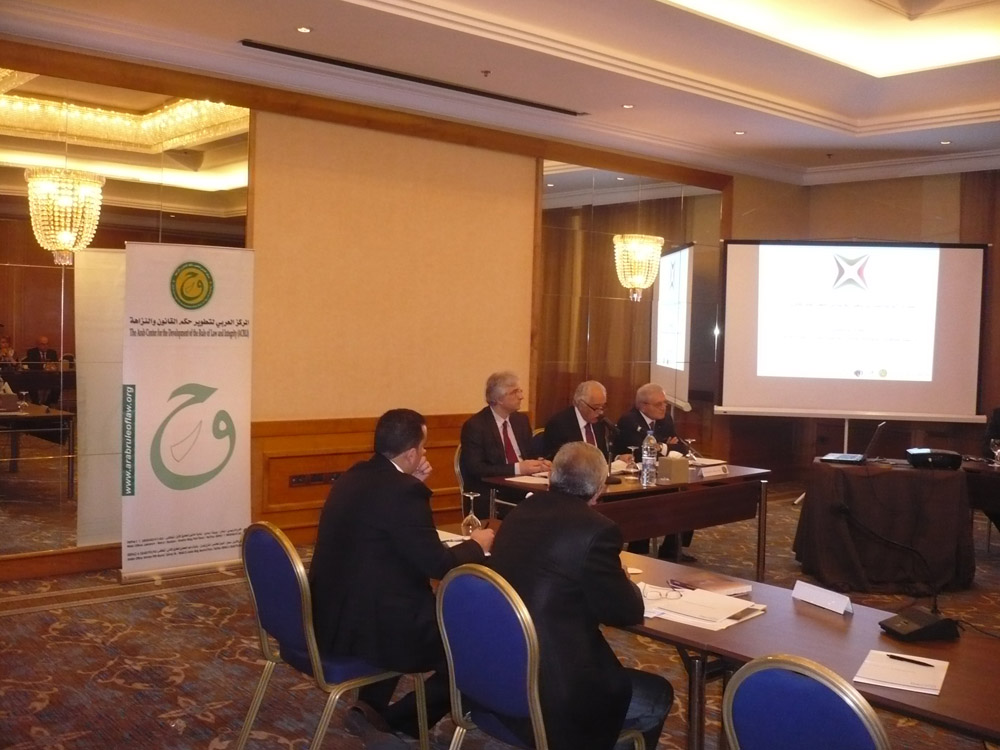 أ- انشاء مرصد عربي لحكم القانون تتناول انشطته المحاور التي تم ذكرها